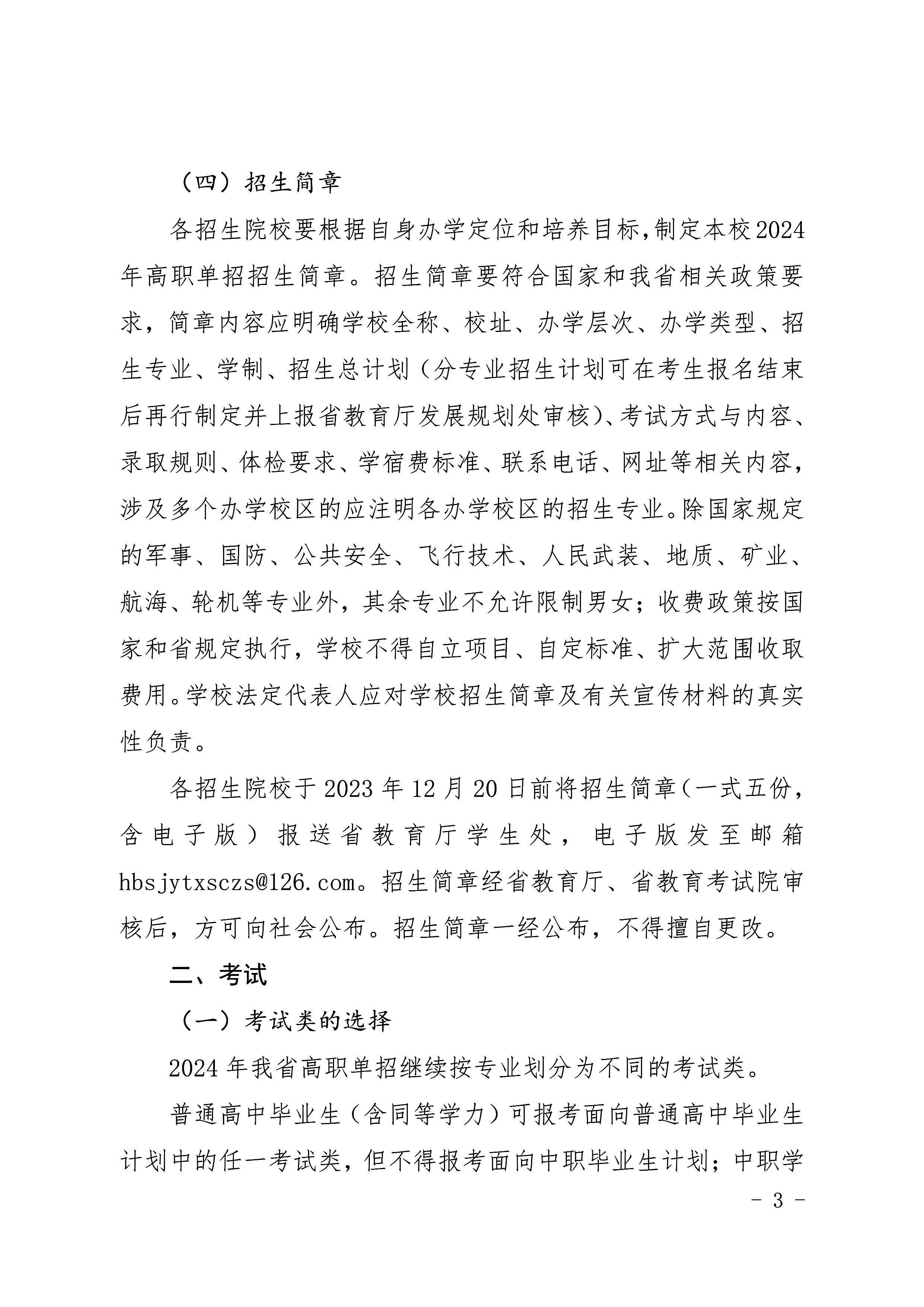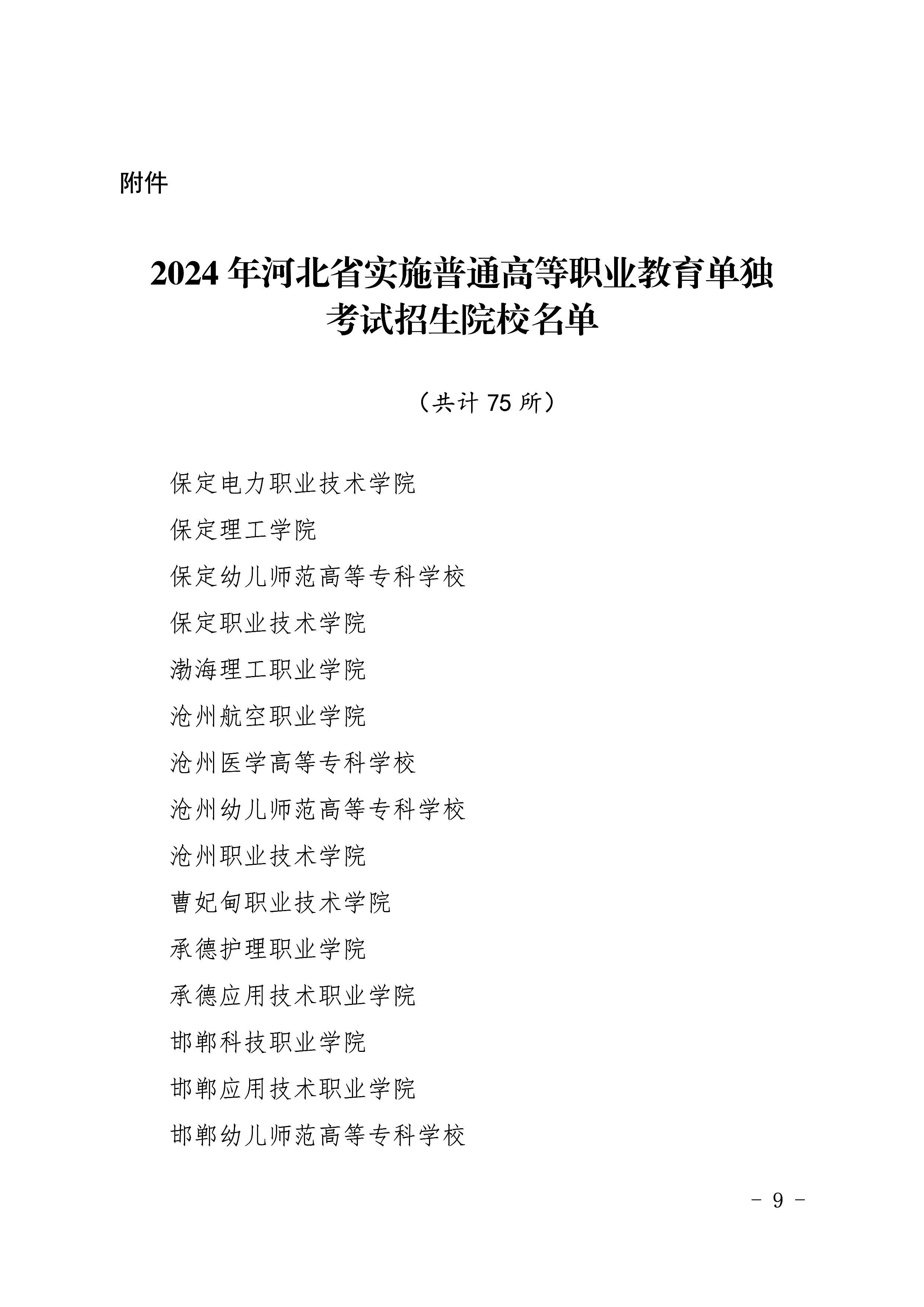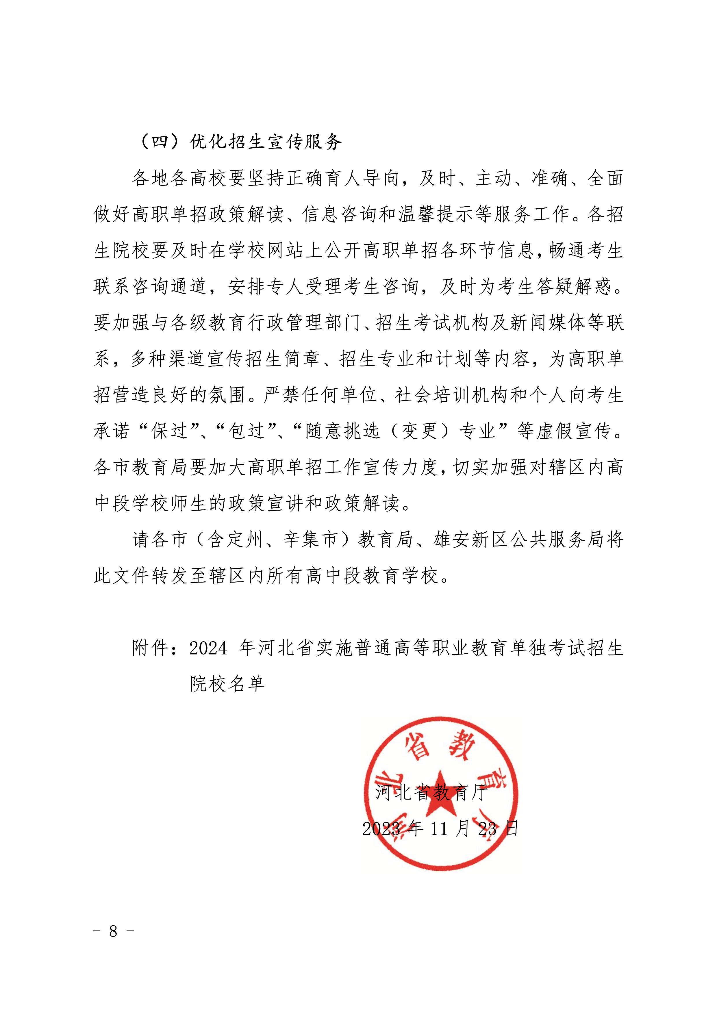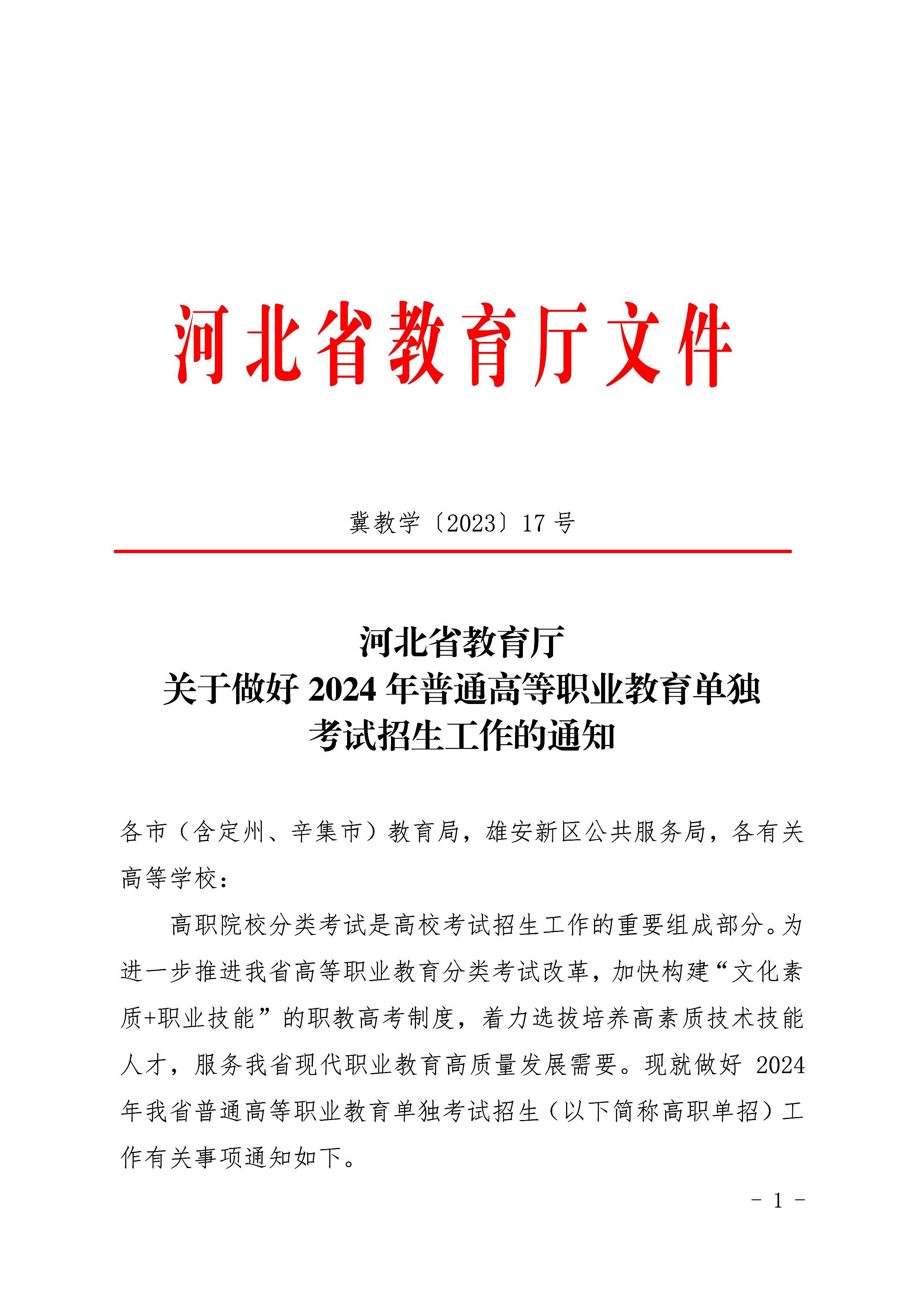 河北省教育厅关于做好2024年普通高等职业教育单独考试招生工作的通知